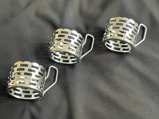Dzień dobry Państwu. Oferuję do sprzedaży trzy koszyczki z PRL-u do klasycznych szklanek. Rzadkie egzemplarze. ...